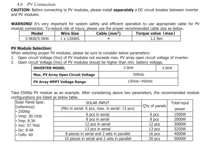 Инвертор без внешнего аккумулятора, напряжение, которое начинает подключаться к теполярной панели, должно быть выше 150 в для работы инвертора